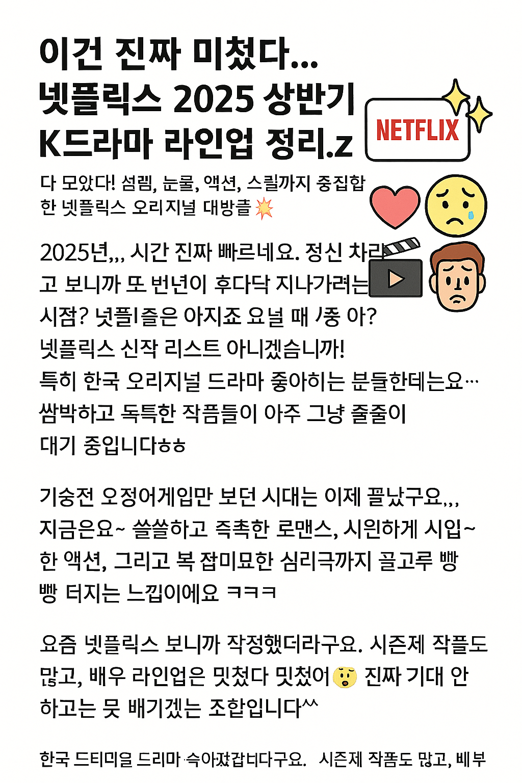 2025년 상반기 넷플릭스 한국 드라마 라인업