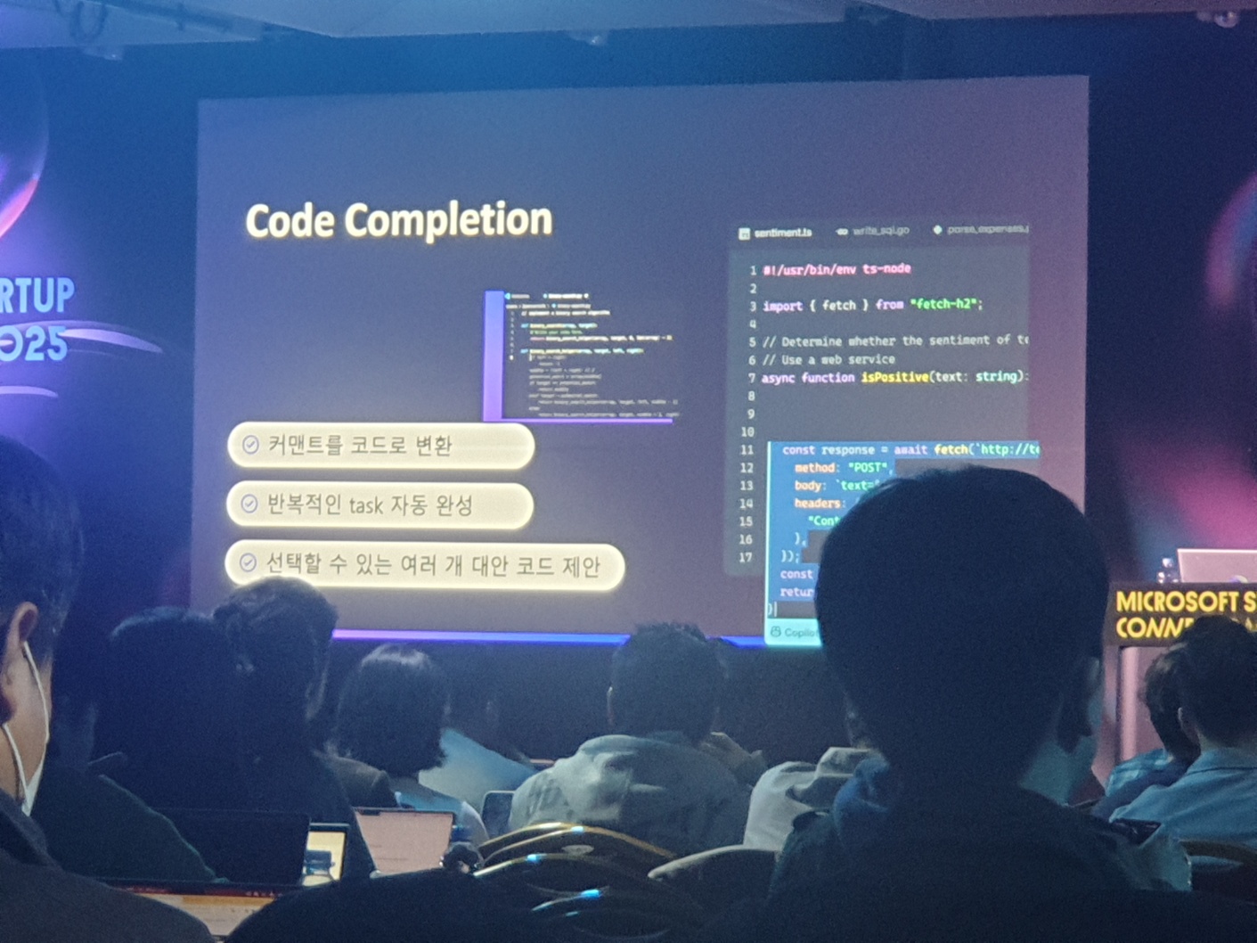개발자들이 Copilot을 어떻게 실제 업무에 녹이고 있는지를 직접 시연해 주셨어요.